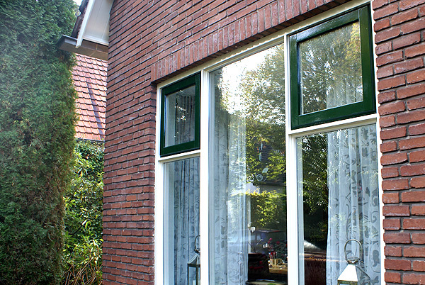 De kleur van het schilderwerk is voor dit huis niet veranderd. Wel is al het buitenschilderwerk helemaal opnieuw gedaan. In stralend hoogglans, staat het hele huis weer strak in de verf. Kortom, fris wit-groen schilderwerk.